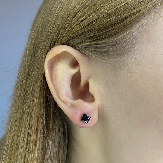 Sidabriniai rodžiuoti 3 - 5 mm juodi kvadratėliai su cirkoniu