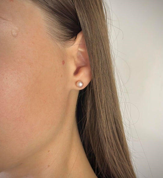 Sidabriniai rodžiuoti 5 - 10 mm auskarai su perlu