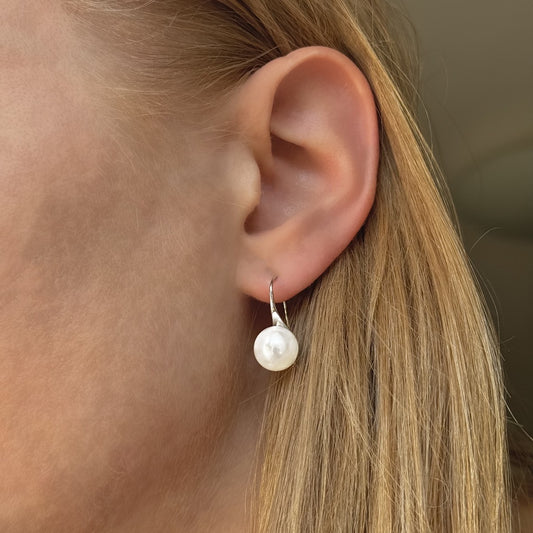 Sidabriniai auskarai su baltu perlu