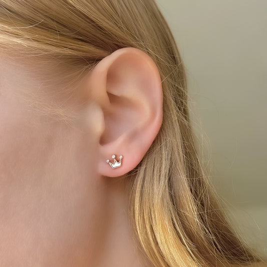 Sidabriniai auskarai karūnėlės su perlamutru