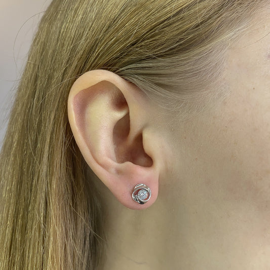 Sidabriniai rodžiuoti vinukai su baltu cirkoniu