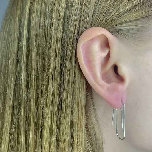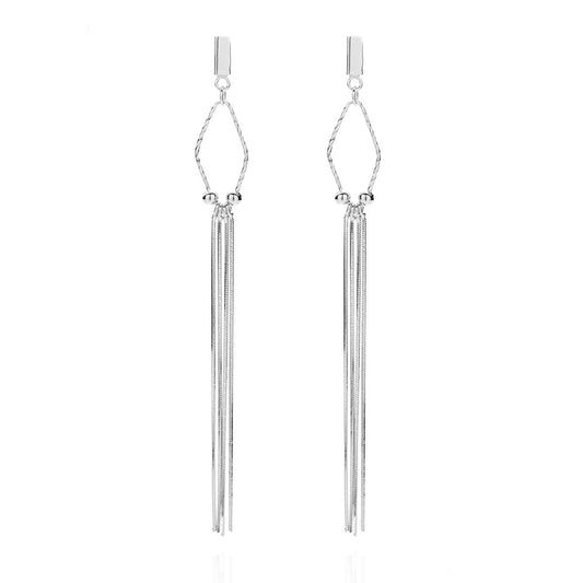 Sidabriniai rodžiuoti kabantys auskarai su grandinėle
