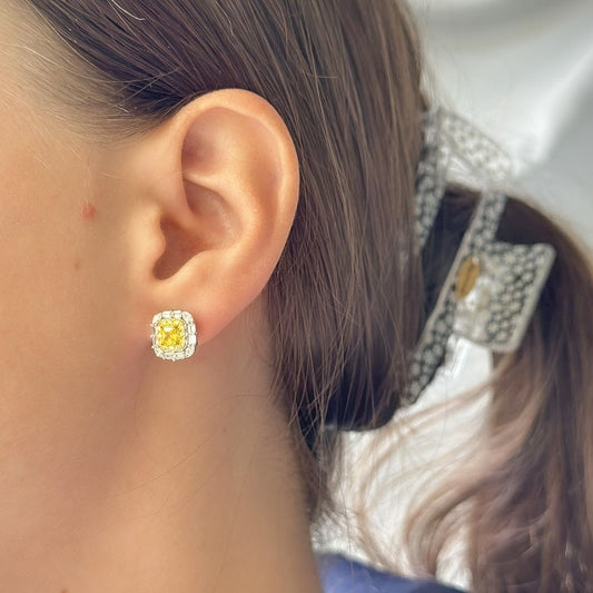 Sidabriniai rodžiuoti auskarai su geltonu cirkoniu