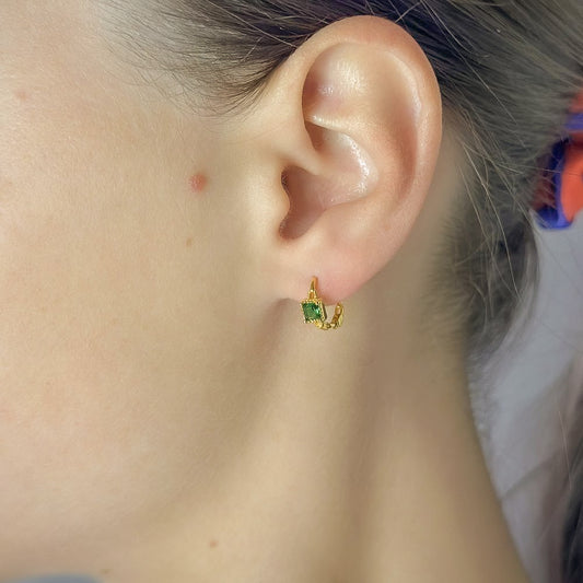 Sidabrinės auksuotos 1,1 cm rinkutės su žaliu cirkoniu