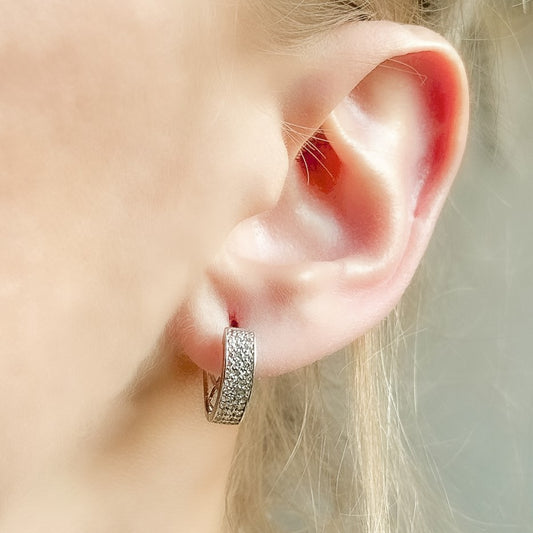 Sidabriniai auskarai anglišku užsegimu ir 3 eilėmis cirkonių