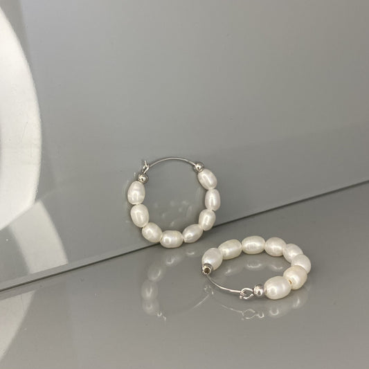 Sidabrinės rodžiuotos rinkutės su tikrais perlais