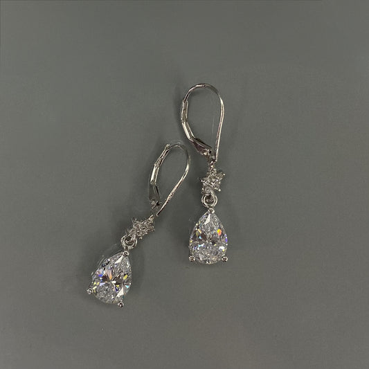 Sidabriniai rodžiuoti kabantys auskarai su lašo formos cirkoniu