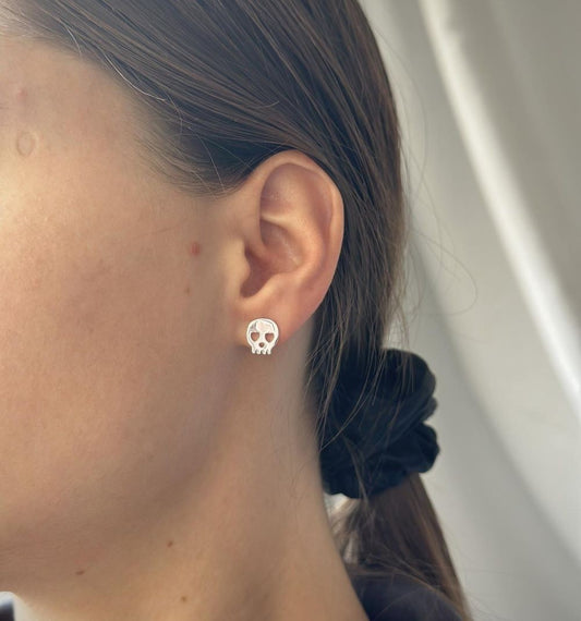 Sidabriniai auskarai "Kaukolė" su širdelėmis
