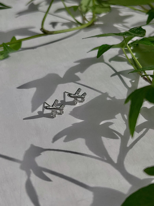 Sidabriniai rodžiuoti lėktuvėliai su cirkoniais