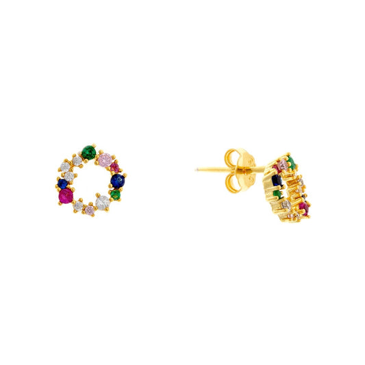Sidabriniai auksuoti vinukai su spalvotais cirkoniais