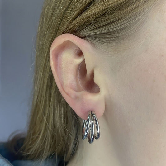 Sidabrinės rodžiuotos 1,7cm rinkutės su cirkoniais