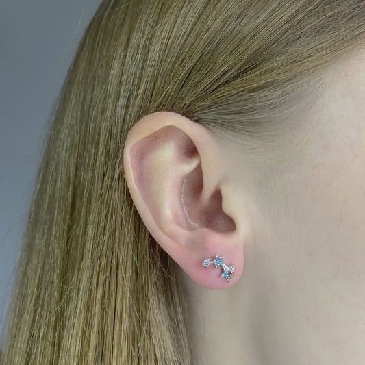Sidabriniai rodžiuoti auskarai žvaigždutės su spalvotu cirkoniu