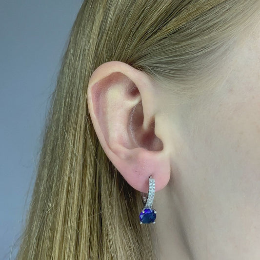 Sidabriniai rodžiuoti kabantys auskarai anglišku užsegimu su cirkoniais