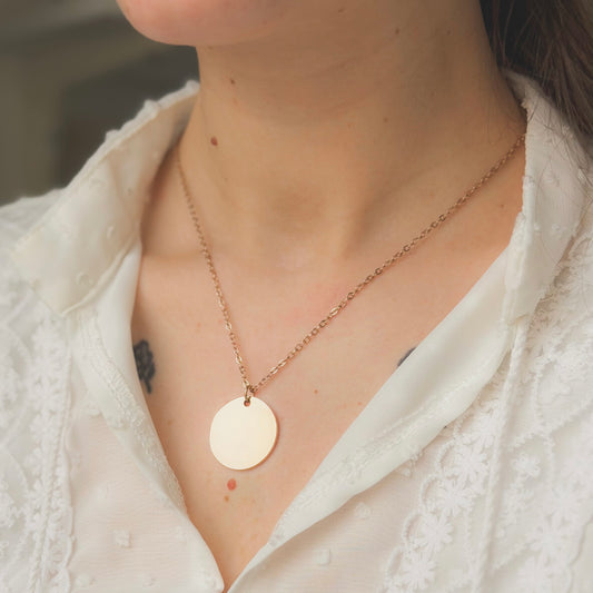 Apvalus plieninis pakabukas su grandinėle
