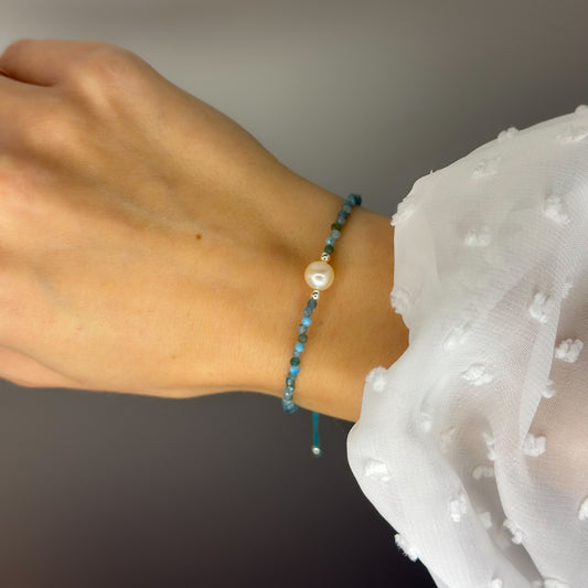 Siūlo apyrankė su perlu ir apatito akmenukais