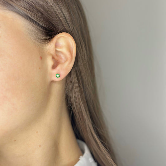 Sidabriniai užsukami auskarai su žaliu ir baltu cirkoniu