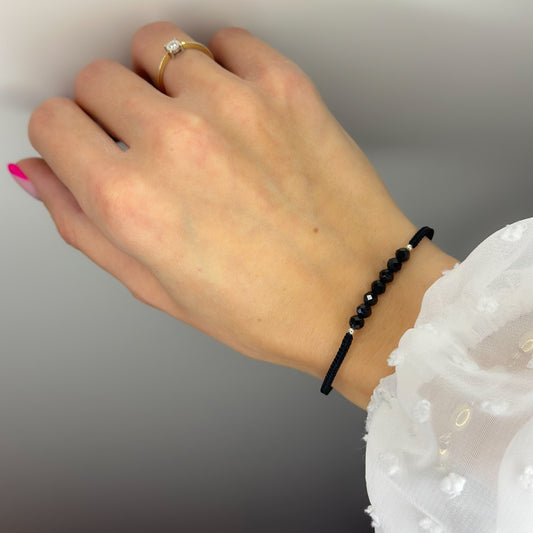 Siūlo apyrankė su juodojo spinelio akmenukais