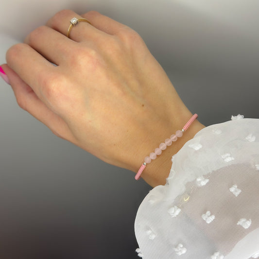 Siūlo apyrankė su rožinio kvarco akmenukais