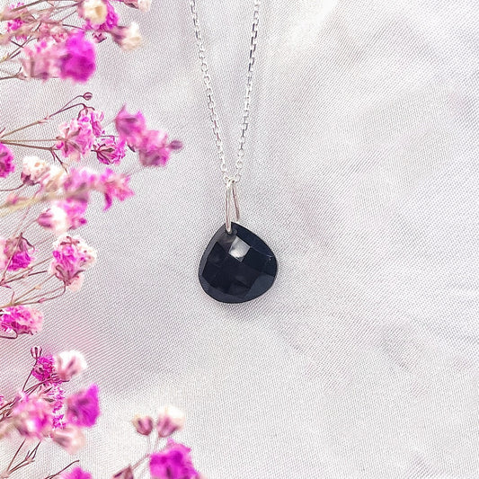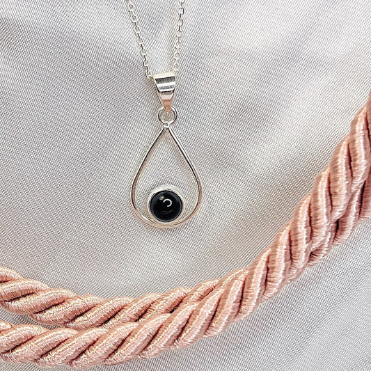 Sidabrinis pakabukas su onikso akmeniu ir grandinėle