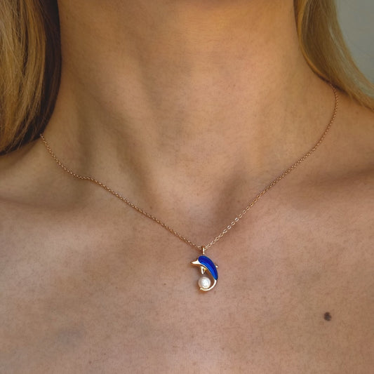 Sidabrinis paauksuotas pakabukas delfinas su perliuku ir grandinėle