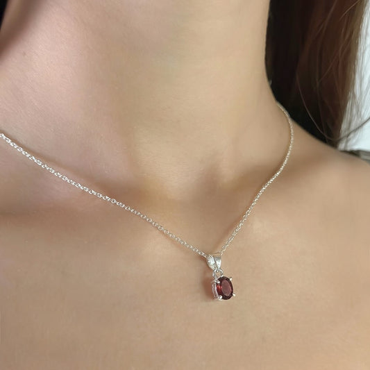 Sidabrinis pakabukas su granato akmeniu ir grandinėle