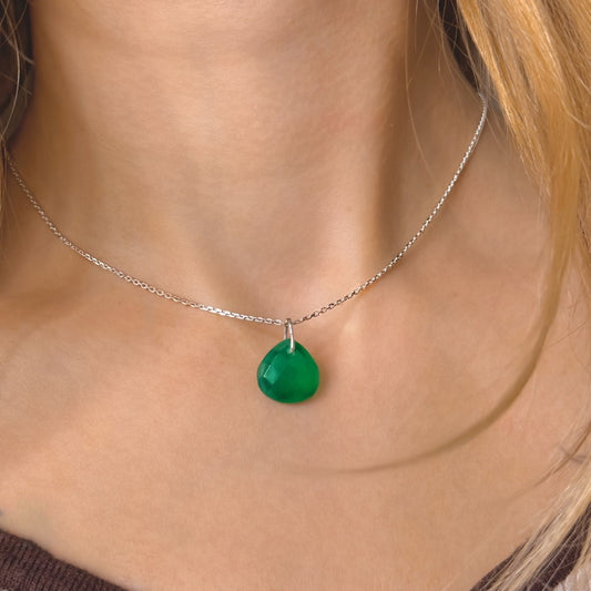 Pakabukas su žaliuoju oniksu ir grandinėle
