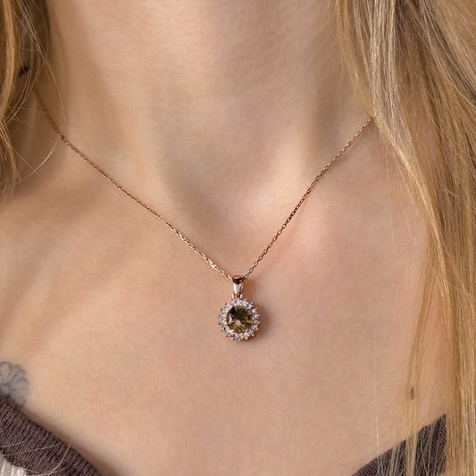 Sidabrinis auksuotas pakabukas su cirkonio akute ir grandinėle