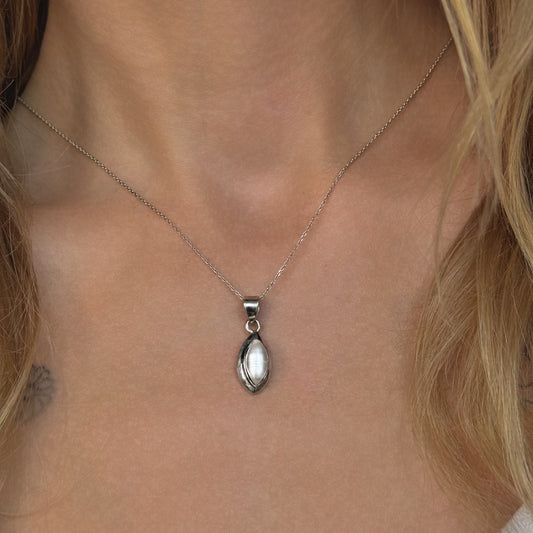 Sidabrinis pailgas pakabukas su tikru perlu ir grandinėle