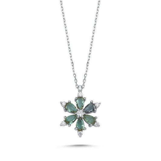 Sidabrinis pakabukas su žaliu cirkoniu ir grandinėle