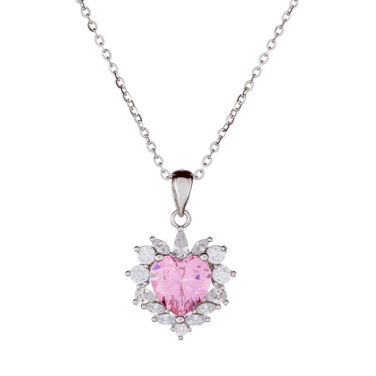 Sidabrinė širdelė su baltu cirkoniu ir grandinėle
