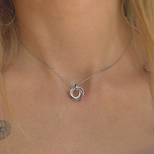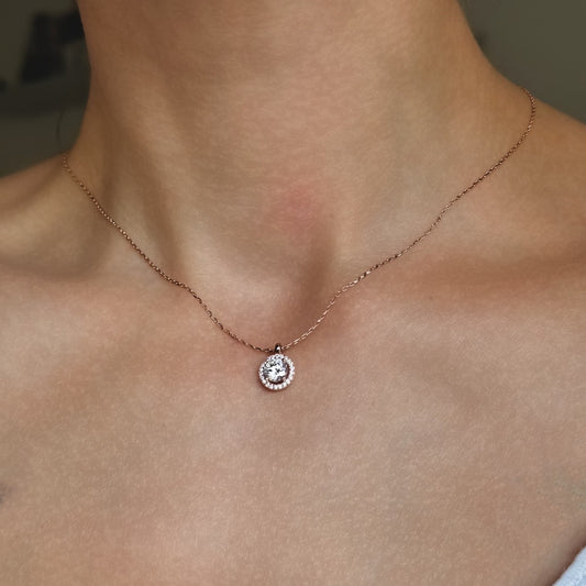 Sidabrinis rodžiuotas apvalus pakabukas su cirkoniu ir grandinėle