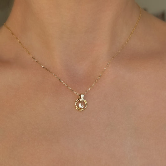 Sidabrinis auksuotas pakabukas su cirkoniu ir grandinėle