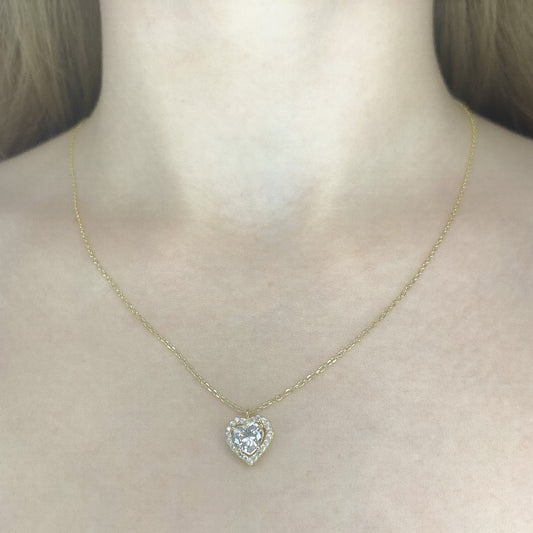 Sidabrinė auksuota širdelė su cirkoniais ir grandinėle