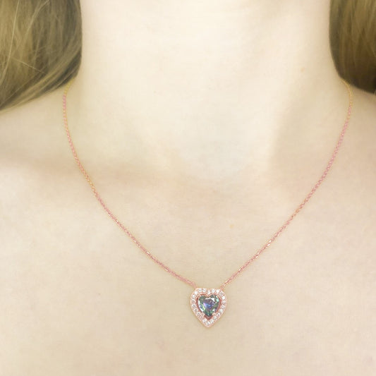 Sidabrinė paauksuota širdutė su mistiniu topazu ir grandinėle
