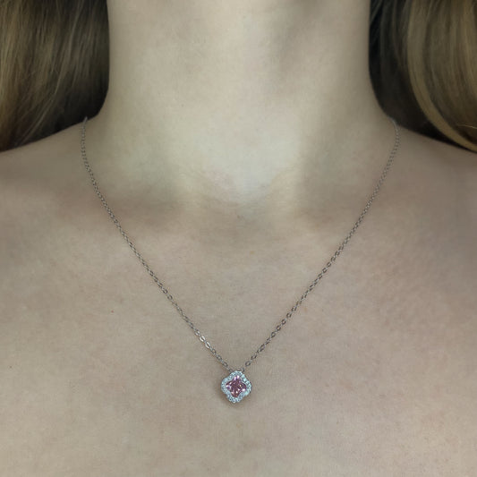 Sidabrinė rodžiuota širdelė su rožiniu cirkoniu ir grandinėle