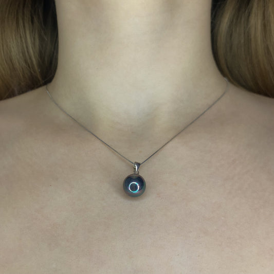 Sidabrinis rodžiuotas pakabukas su tamsiuoju perlu