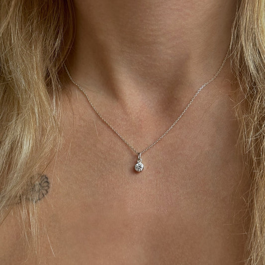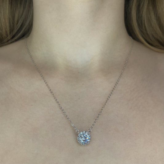 Sidabrinis pakabukas su apvaliu cirkoniu ir grandinėle