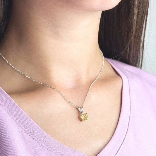 Sidabrinis auksuotas pakabukas su apvaliu cirkoniu ir grandinėle