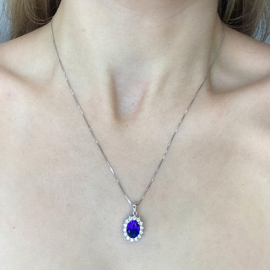 Sidabrinis auksuotas pakabukas su sintetiniu opalu ir grandinėle