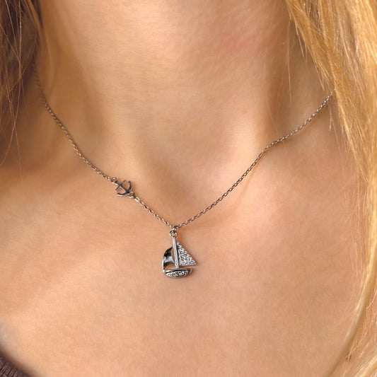 Sidabrinis rodžiuotas pakabukas su cirkoniais ir grandinėle