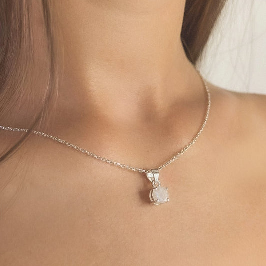 Sidabrinis pakabukas su apvaliu mėnulio akmeniu ir grandinėle