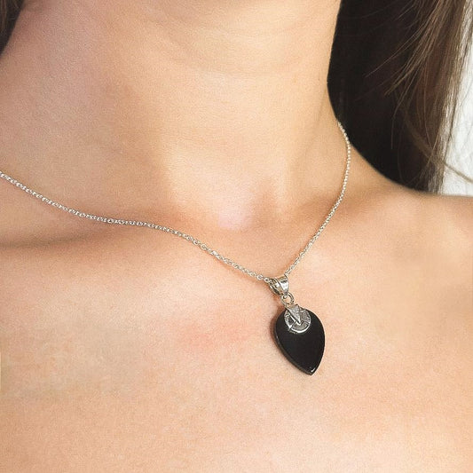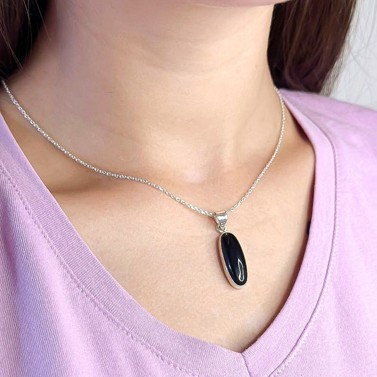 Sidabrinis pakabukas su onikso akmeniu ir grandinėle