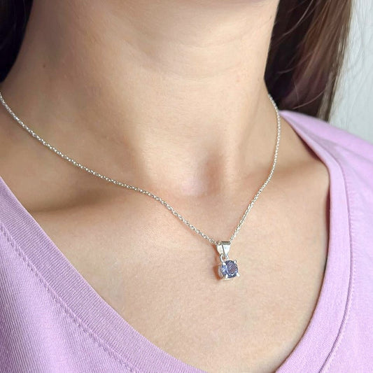 Sidabrinis pakabukas su ametistu ir grandinėle