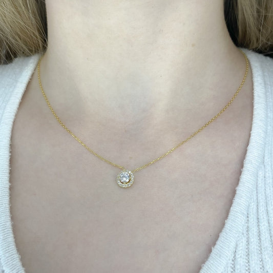 Sidabrinis paauksuotas apvalus pakabukas su cirkoniais ir grandinėle