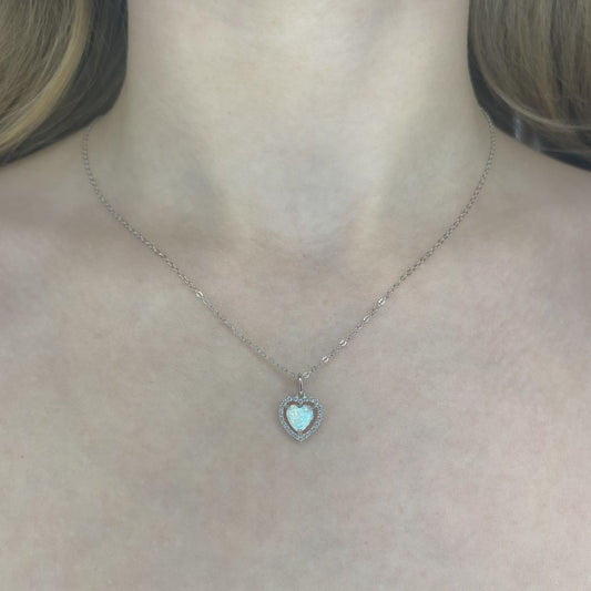 Sidabrinis rodžiuotas pakabukas širdelė su sintetiniu opalu ir grandinėle