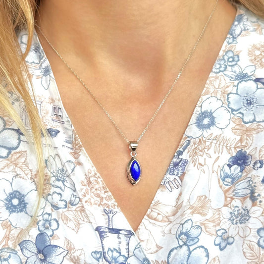 Sidabrinis pakabukas su lazurito akmeniu ir grandinėle