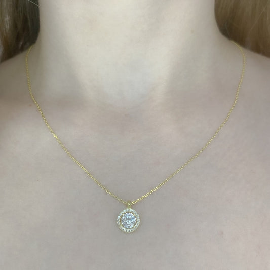 Sidabrinis paauksuotas apvalus pakabukas su cirkoniu ir grandinėle