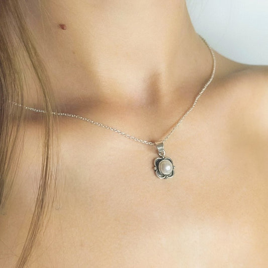 Sidabrinis pakabukas su tikru perlu ir grandinėle