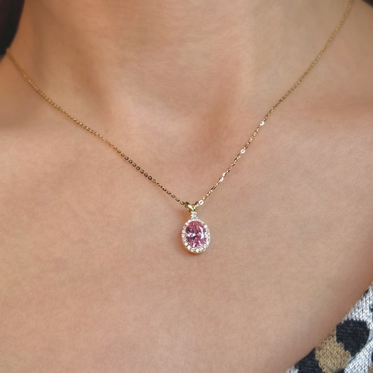 Sidabrinis auksuotas pakabukas su ovaliu rožiniu cirkoniu ir grandinėle