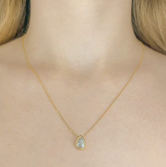 Auksuotas sidabrinis lašo formos pakabukas su cirkoniu ir grandinėle